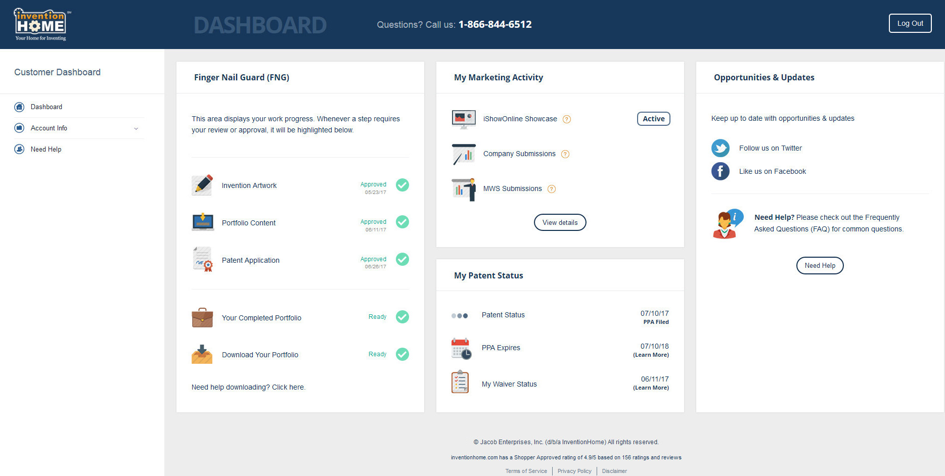 When someone becomes a customer and logs in to the their account, they should be able to easily see important things like order status and progress of their purchase. This UI was created for InventionHome with the goal of making that transition as smooth as possible.