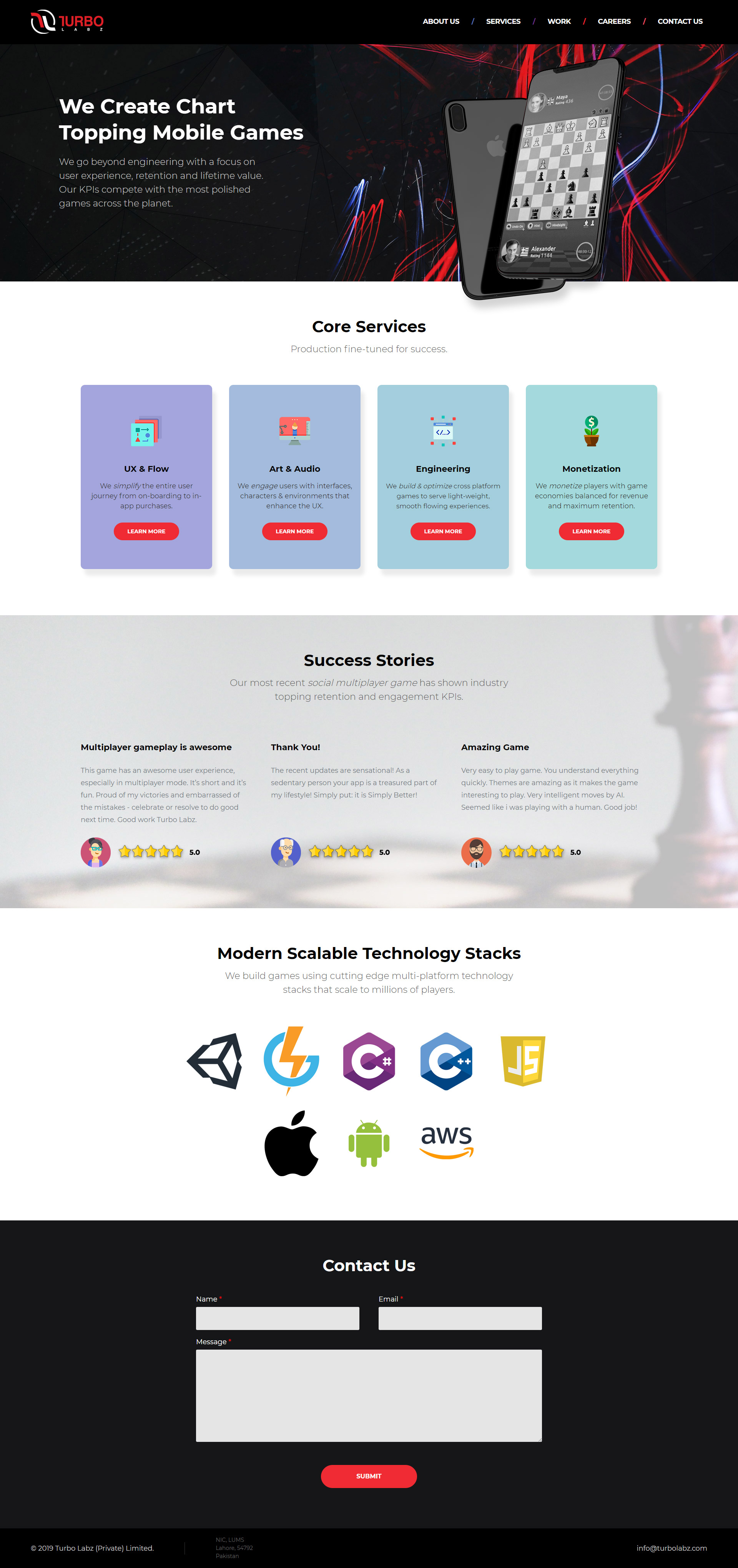 Turbo Labz is an up-and-coming app development company. They came to me to have two websites created together; their first website was Turbo Labz, their app development side of the company and Everplay, a project of theirs. I took a few examples of the style they liked and design and coded a completely custom website.
