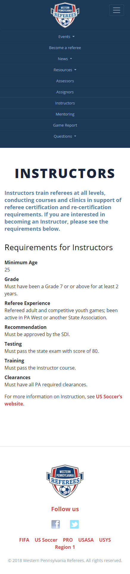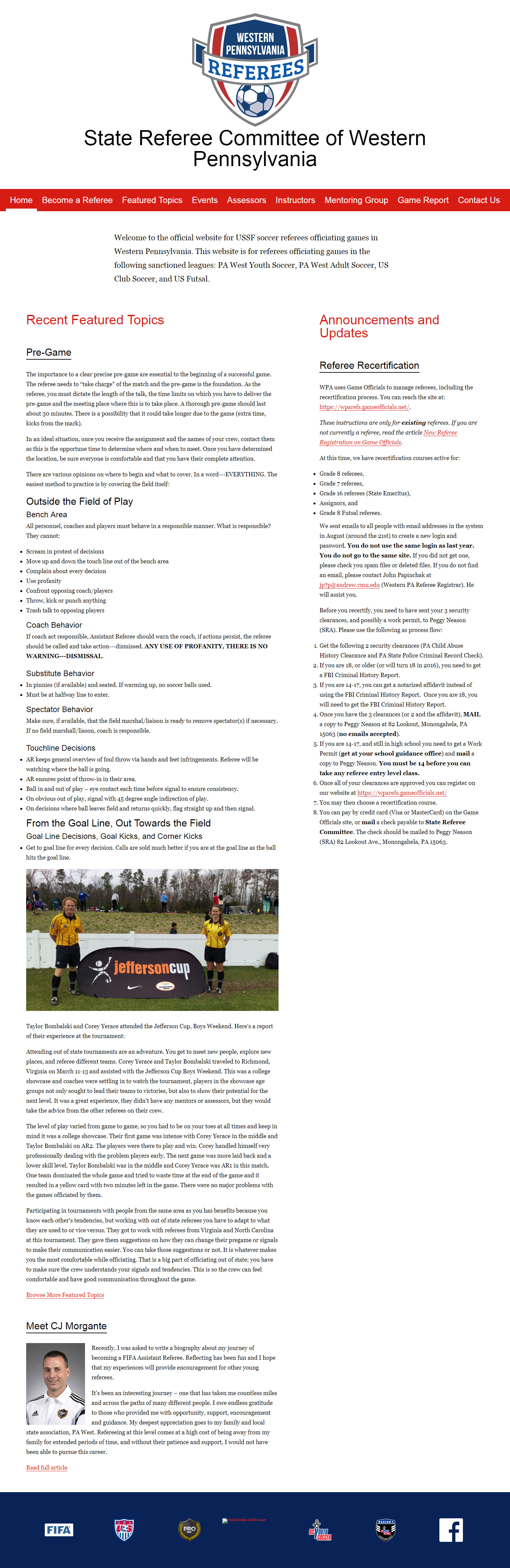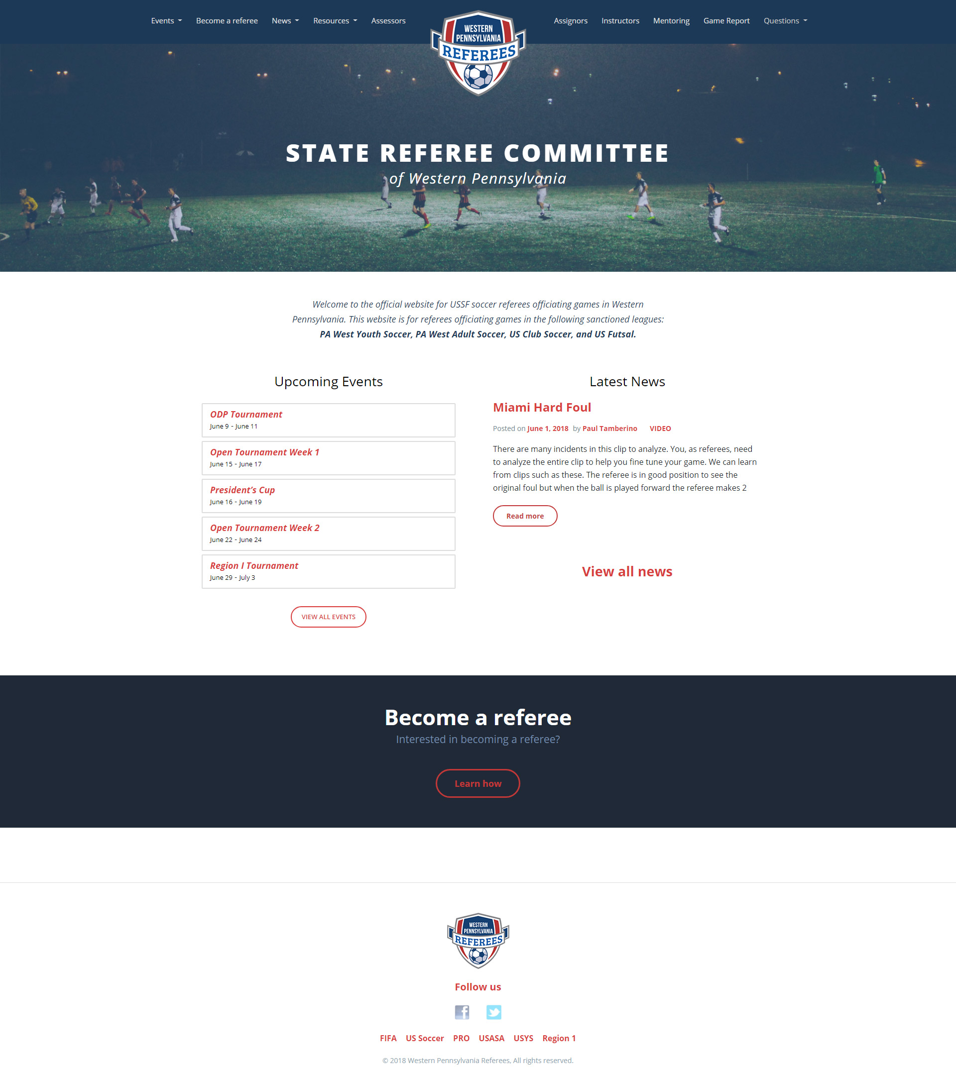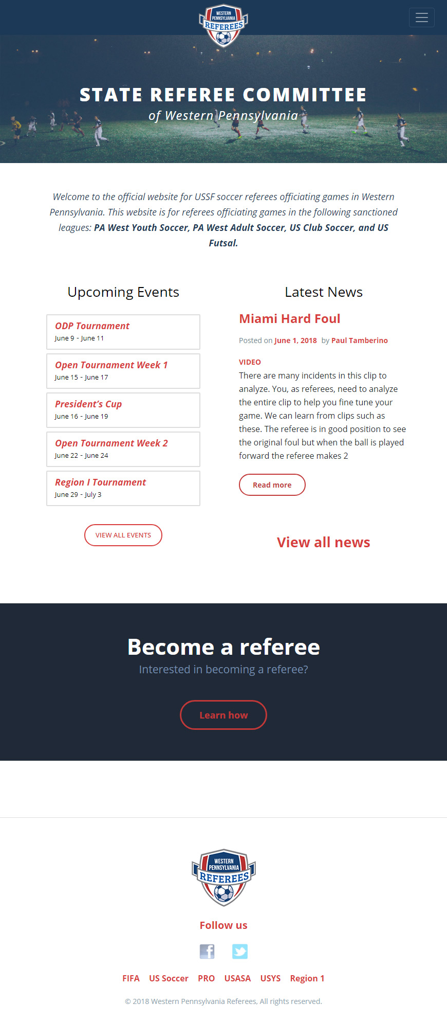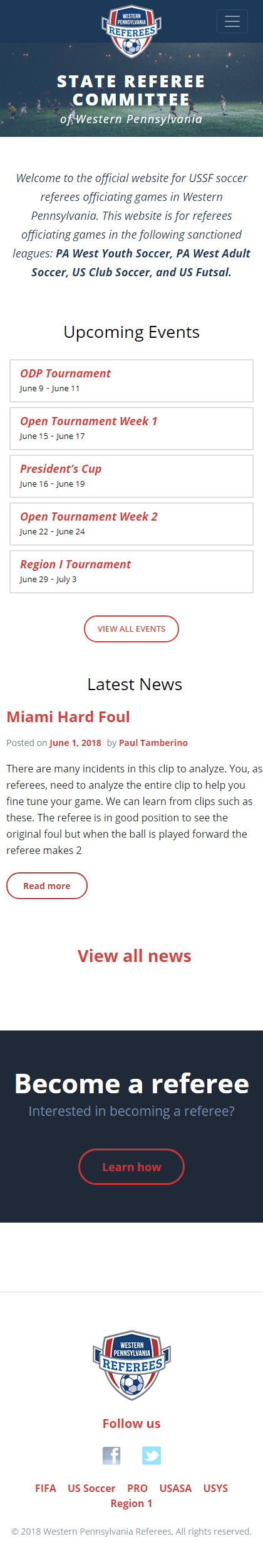 I designed the new homepage to do specifically what was important to them: keep people informed of events and serve as a portal to learn how to become a referee.
